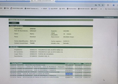 Detalle de la información de un animal con solo pasar un lector por la caravana o cargar el numero de la misma en el sistema.