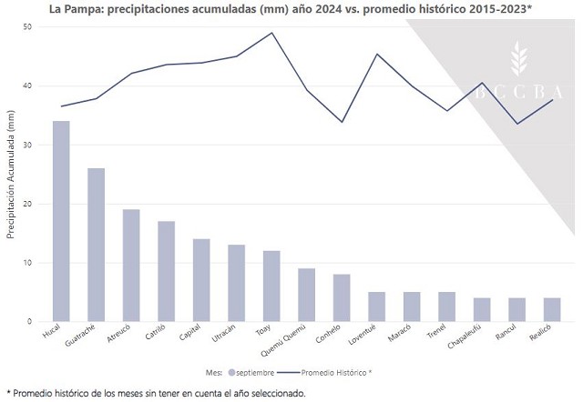 Durante el mes de septiembre cayeron algunos milímetros en la región, sin embargo, el acumulado no superó el promedio histórico para la época. Si bien las lluvias contribuyeron a recargar la humedad del perfil, el agua útil continúa siendo escasa.