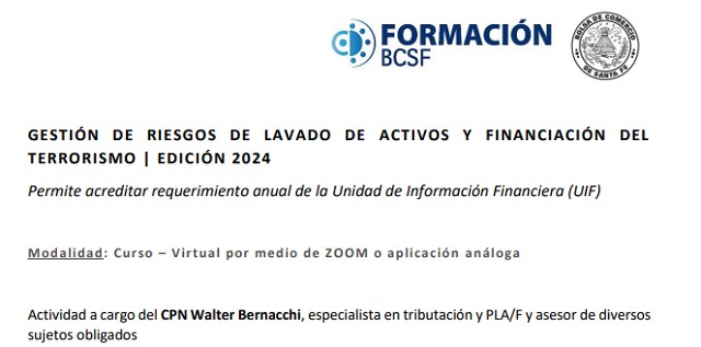 A cargo de: CPN Walter Bernacchi, especialista en tributación y PLA/F y asesor de diversos sujetos obligados | Modalidad: vía Zoom