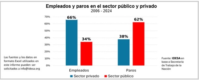 Estos datos muestran que la intensidad de la conflictividad laboral es mucho más alta en el Estado que en el sector privado. El fenómeno no se justifica en que las condiciones laborales en el sector privado sean mejores que en el sector público. En general, en el Estado hay menos exigencias de jornada, presentismo y resultados que en el sector privado y las remuneraciones son similares. Por lo tanto, que un tercio de los empleados registrados sean empleados públicos, pero dos tercios de los paros sean causados por ellos, sugiere que en el Estado hay condiciones más propicias para los paros.