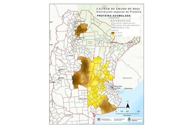 Según detalló la investigadora, el valor medio nacional de proteína para el segundo relevamiento fue de 35,6 % (bs), con una disminución de un 1 %. “NOA presentó el valor medio más alto de proteína por segundo año consecutivo (37,2 % (bs)), mientras que Entre Ríos registró el valor medio más bajo: 34,7 % (bs).