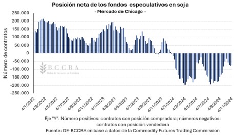 Los fondos especulativos en el mercado de Chicago han aumentado sus posiciones compradas y recortado las posiciones vendidas, aunque todavía la posición neta es vendida, demostrando que los fondos encuentran pocos fundamentos que justifiquen nuevas subas.