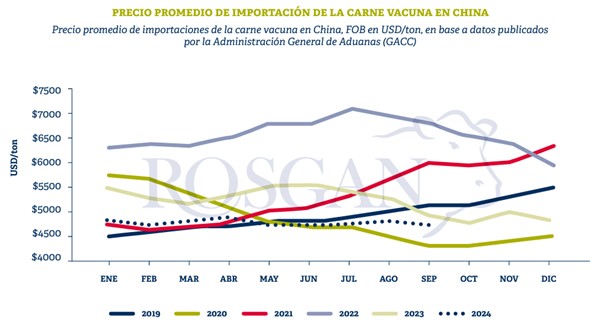 Recordemos que China absorbe cerca del 35% del mercado mundial de carne vacuna lo que lo posiciona como el actor más determinante del pulso del mercado.