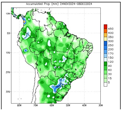 Precipitaciones acumuladas en los últimos quince días (USDA)