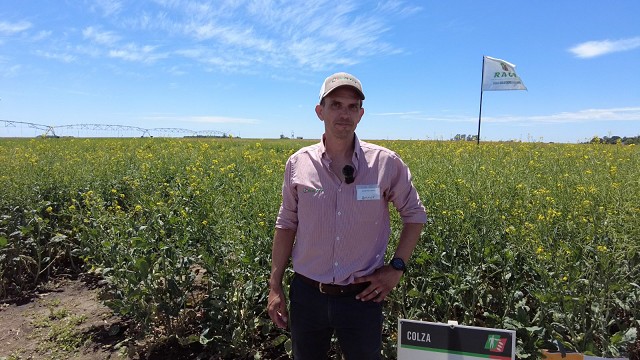 La expo también presentó variedades de Colza. “Venimos de una experiencia muy importante en Uruguay, tenemos colzas invernales e híbridas. Son plantas para sembrar entre fines de Marzo hasta principios de Mayo que tienen alto potencial de rendimiento y muy buen contenido de aceite, y además un excelente paquete sanitario superior a lo que el productor pudo haber probado. Se puede cosechar directo cuando están maduras porque son variedades que no tienen el problema de que se abran las silicuas. Hace tres años que venimos armando una red de testing para desarrollar estas colzas para Argentina. Hoy presentamos las colzas RGT Cuzzco, RGT Muzzical y RGT Nizza CL, todas de maduración pareja lo que permite la cosecha sin aplicación de desecantes” explicó Agustín Cantó.