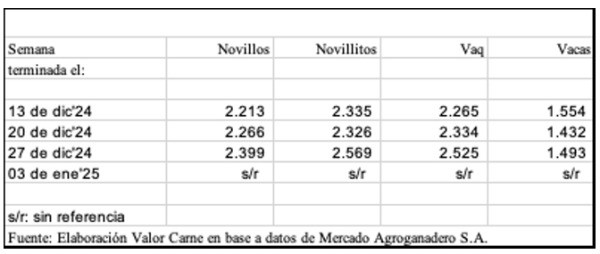Los valores de los remates del viernes 27 de diciembre, con un ingreso de 7.300 animales al mercado (el 95% de la oferta de toda la semana), mostraron aumentos interesantes que parece difícil que puedan mantenerse.
