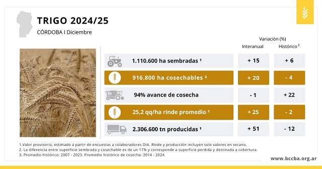 Trigo: 2,3 millones de tn de producción; ↑51% interanual.