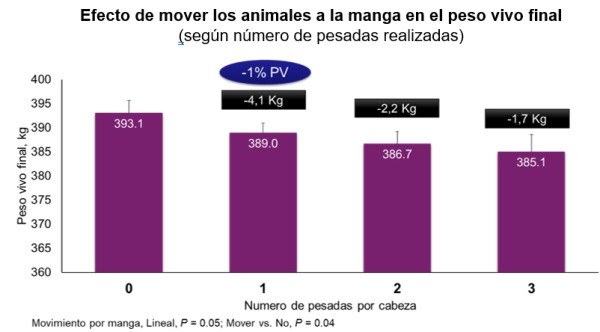 En esa dinámica, también incide el momento en que se realiza el movimiento. “Si se pesan en la mitad del encierre, interrumpiendo el período de mayor ganancia diaria, la merma de peso final es mayor”, advirtió.