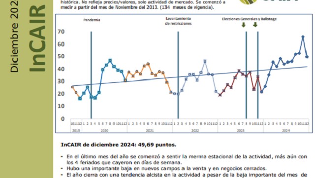 La Cámara Argentina de Inmobiliarias Rurales (CAIR) publica una vez más el Índice de Actividad del Mercado Inmobiliario Rural (InCAIR).