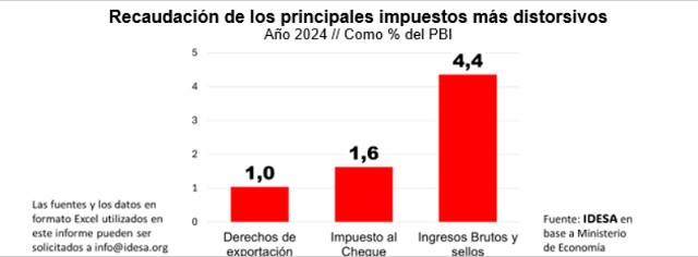 Un punto de partida básico para dimensionar los desafíos de eliminar los impuestos distorsivos es cuantificar su recaudación. Considerando sólo los impuestos distorsivos más importantes, según datos del Ministerio de Economía referidos al 2024, se observa que: