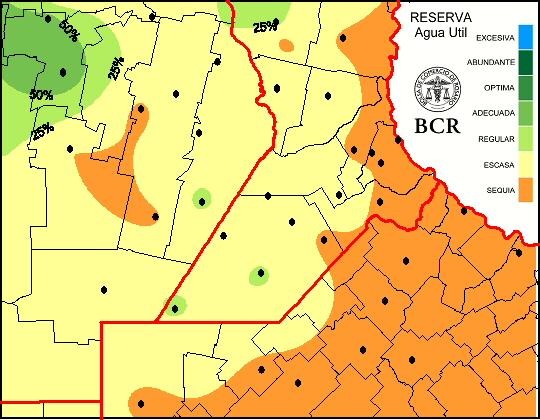 Enero se despide con lluvias. Las tormentas han vuelto a la región en las útlimas dos semanas, pero con acumulados muy dispares. Tan es así, que el mapa de lluvias realizado con las 36 estaciones de la red GEA/BCR, no logra ser tan representativo como lo lo suele ser. De todas formas, puede apreciarse que, salvo algunos focos de lluvias en el departamento Gral López y en el extremo noroeste (Colonia Almada), dónde las lluvias superaron holgadamente los 60 mm, en el resto de la región las localidades recibieron entre 30 y 40 % de la media mensual de enero. La media, tomando los útlimos 30 años, está entre 120 y 130 mm. Así, termina enero con la condición de sequía en el 43% de la región, con escasez en el 50% y con reservas regulares a adecuadas en solo un 7% de la zona.