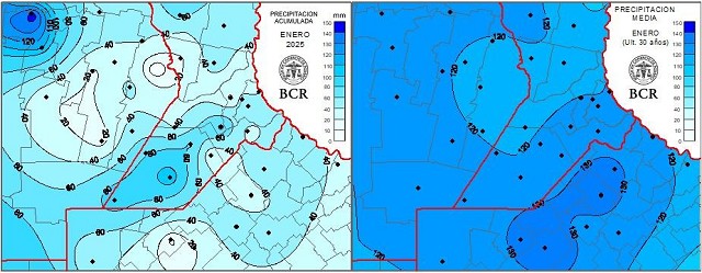 En enero de 2025 el 70% de la región recibió un 30 a 40% de la media mensual