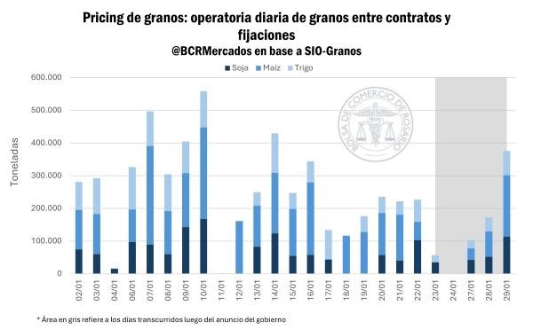 El mercado se ha revolucionado desde la semana pasada, todos los reflectores han apuntado a la reducción temporaria de derechos de exportación (DEX) anunciada por el gobierno el jueves 23 de enero y sus potenciales efectos en la comercialización de granos. Aún resulta demasiado prematuro para poder apreciar el impacto en la operatoria, cuando inclusive los operadores siguen digiriendo la letra chica del decreto y el pricing de toneladas no termina de arrancar.