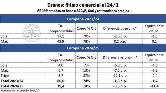 Esta medida llega al tiempo que el cuadro comercial por los granos en el mercado local se encuentra en línea para los compromisos de la campaña 2023/24 que está pronta a finalizar, pero aún muestra un importante retraso en las toneladas anotadas para la 2024/25 teniendo en cuenta el actual nivel de oferta estimada y proyectada.
