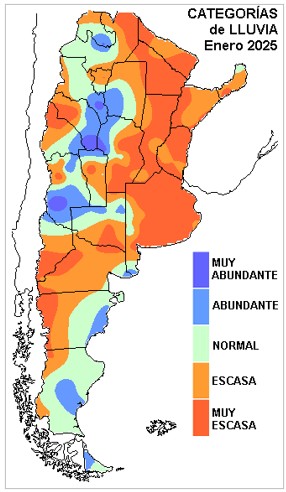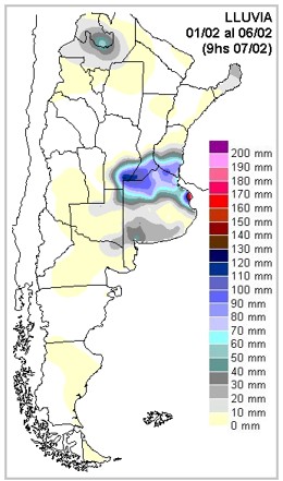 Es muy extendido el predominio de precipitaciones por debajo de los valores normales. Es más, son las lluvias muy escasas las que predominaron a gran escala. Las mejoras observadas apenas lograron mitigar en forma temporaria los faltantes pluviales. Esta condición deficitaria aun predomina en gran parte del centro norte de la región pampeana, donde la recuperación de principios de febrero no tuvo ninguna injerencia.