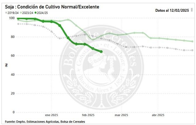 Tras un ambiente de altas temperaturas, el 64 % de la soja a nivel nacional, presenta una condición de cultivo Normal/Excelente, -3 p.p. por debajo al previo informe.