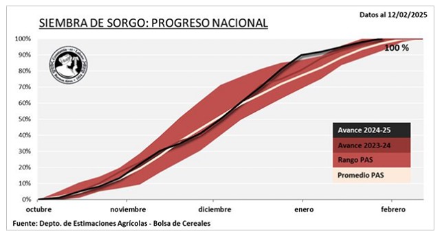 Se da por finalizada la siembra de sorgo alcanzando las 1.000.000 Ha estimadas. Se reportan síntomas de estrés hídrico con mayor implicancia en la provincia de Santa Fe