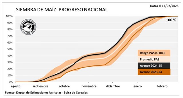 La siembra de las 6,6 MHa estimadas finalizó esta semana en toda el área agrícola, a la vez que se reportan los primeros avances de cosecha con buenos resultados hasta el momento.