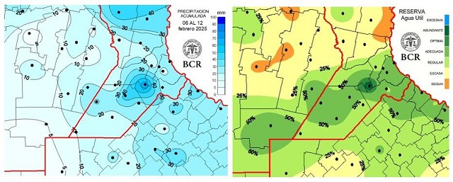 Entre el 6 y el 12 de febrero, las lluvias siguieron sumando en la región, repitiendo el buen arranque del mes. Los acumulados más altos se dieron en el centro/este, mientras que el oeste tuvo los registros más bajos. El noroeste de región nucleo, que había quedado afuera en la previa, recibió esta vez agua, como en Carlos Pellegrini, con 50 mm (sin contar los 40 mm extra que cayeron después de las 9 am del miércoles 12).