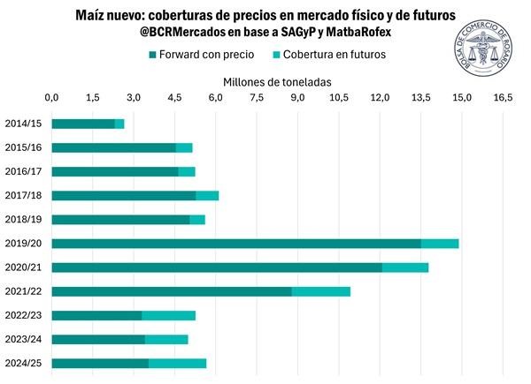 Condicionados por amenazas climáticas y especulaciones sobre el marco regulatorio, durante las últimas tres campañas, los forwards con precio en firme de maíz nuevo han perdido participación en el total de coberturas a manos de los mercados de futuros.