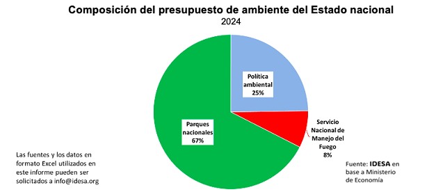 El presupuesto de la Subsecretaria de Ambiente ejecutado en el 2024 fue de $95.000 millones que representan el 0,1% del gasto primario nacional. La composición fue la siguiente: