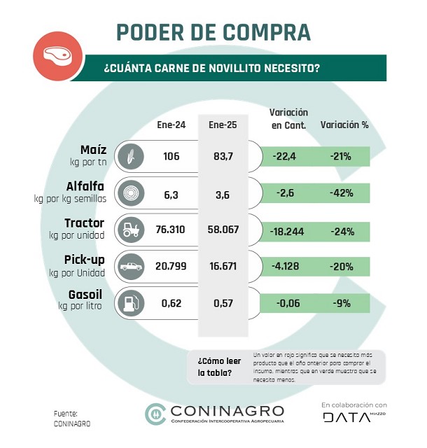 CONINAGRO presentó su informe mensual que analiza el poder de compra de seis productos clave de la producción agropecuaria en Argentina: soja, maíz, trigo, ternero, novillito y leche. Este indicador mide la capacidad de estos productos para adquirir una amplia gama de insumos, costos e inversiones del sector agropecuario, que incluyen herbicidas, fletes y maquinaria, y 20 variables más que se analizan.