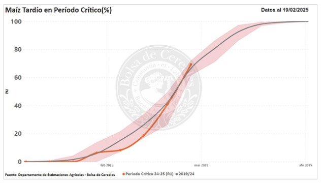 Con el 70,5 % de los planteos tardíos en periodo crítico, las lluvias registradas en los últimos días han tenido un impacto positivo, deteniendo el deterioro observado entre enero y lo que va de febrero.