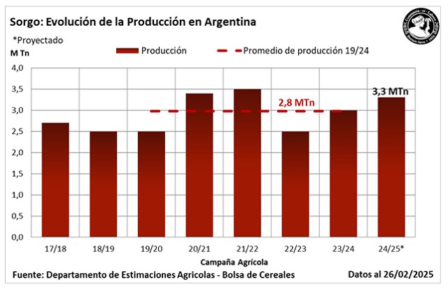 En estas zonas, la ocurrencia de lluvias será fundamental para asegurar un buen llenado de los granos. En contraste, las precipitaciones recientes en el centro-sur de Santa Fe y Entre Ríos han tenido un impacto positivo en el cultivo. Sin embargo, la presencia de plagas como el pulgón amarillo y el gusano cogollero siguen siendo un desafío, lo que requiere la implementación de controles adecuados. En este contexto, mantenemos nuestra proyección de producción en 3,3 millones de toneladas.
