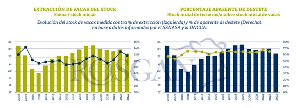 Ciclos de fuerte crecimiento en nivel de faena de vacas como los registrados en los años 2018 y 2019 más allá del período 2008/09 afectado naturalmente por una fuerte y prolongada sequía, tal como lo sucedido en 2023, llevaron a alcanzar niveles de extracción sumamente elevados para el perfil de nuestra ganadería, la cual, en términos de índices de destetes venia bastante amesetada.