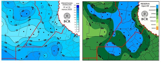 Al igual que febrero, marzo siguió con la racha de lluvias. Aunque el mes suele dejar entre 100 y 125 mm, en apenas 12 días se acumuló un promedio de 105 mm. De hecho, el 60% de la región núcleo ya igualó o superó la marca histórica.