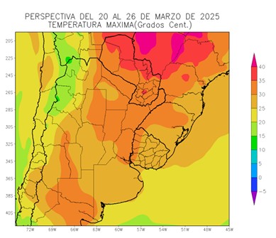 Debido a la persistencia de vientos del Trópico, que hicieron su entrada en los días previos, el Equinoccio de Otoño del Hemisferio Sur (20/03), tendrá lugar con temperaturas máximas muy sobre lo normal en el norte, el centro-este y el sudoeste del área agrícola, mientras, el resto de su extensión observará registros menos intensos, dando condiciones algo atípicas para la estación. Hacia mediados de la perspectiva, se producirá el paso de un frente de tormenta que, provocará precipitaciones abundantes con focos de tormentas, sobre el norte del área agrícola, y registros de variada intensidad en el resto de su extensión, pero dejando al nordeste de la Región Pampeana y al Uruguay con aportes escasos. El proceso se completará con una irrupción algo temprana de aire polar, con riesgo de vientos intensos sobre el sur de Buenos Aires y el Uruguay, aunque sin llegar al extremo norte del área agrícola.