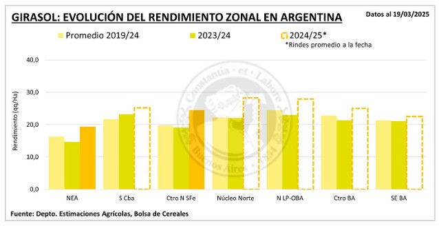 Finalmente, la cosecha de girasol también se ha acelerado, fundamentalmente sobre las regiones del sur del área agrícola, luego de que las condiciones climáticas mejoraran y permitieran el oreo de los suelos y la consecuente entrada de las cosechadoras. El progreso intersemanal de 17,7 p.p. eleva el avance nacional al 39,3 % del área apta, aunque persiste una demora de 19,9 p.p. respecto al ciclo previo y de 29,6 p.p. en comparación con el promedio U5C.
