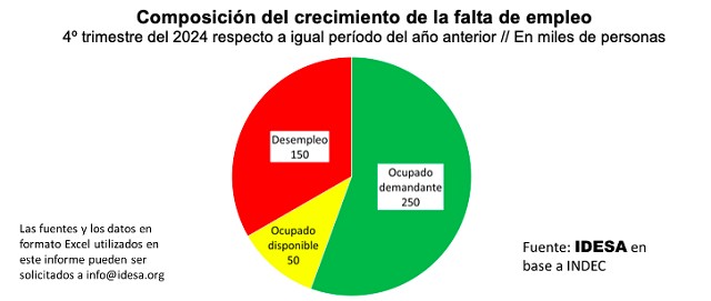 La pregunta que cabe hacerse es si efectivamente hay falta de empleo. Según los datos del INDEC, entre el 4º trimestre del 2024 y el mismo período del año anterior se observa que: