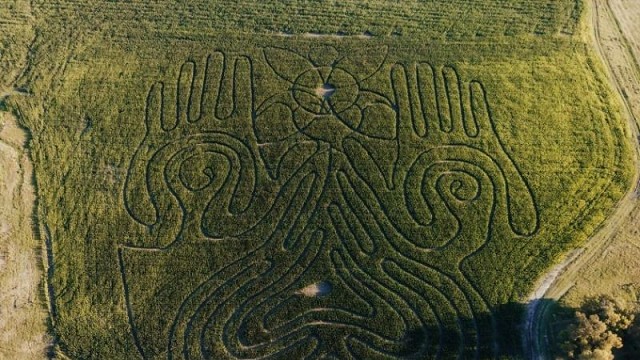 El corte del laberinto se hizo el 31 de enero, apenas un mes y diez días después de la siembra. Fue realizado con tractor y guiado por agrimensores. Al día siguiente, un amigo de la familia sobrevoló el campo con un dron y les envió las primeras imágenes. “Cuando vimos la foto aérea desde el aeropuerto, no lo podíamos creer. Había quedado tal cual lo habíamos dibujado”, dijo Santiago.