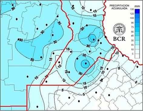 Esta semana, entre el viernes 21 y el martes 25, se sumaron nuevas lluvias a la región. Los mayores acumulados superaron los 30 mm en el sur de Santa Fe y sudeste de Córdoba. En el noreste bonaerense, los registros estuvieron entre 5 a 15 mm e incluso zonas donde no cayó ni una gota.