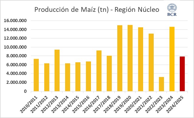 Se ajusta a la baja la estimación de producción de maíz en región núcleo: 300.000 t menos