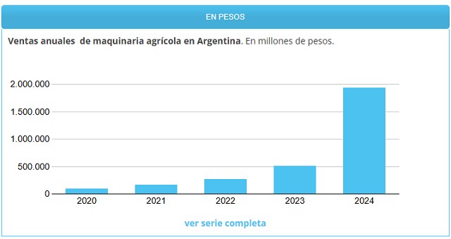 El sector de la maquinaria agrícola alcanzó una facturación récord de $ 1.939.789 millones en 2024, con un crecimiento en pesos corrientes de +275,0% respecto a los valores del año anterior ($ 517.296 millones).