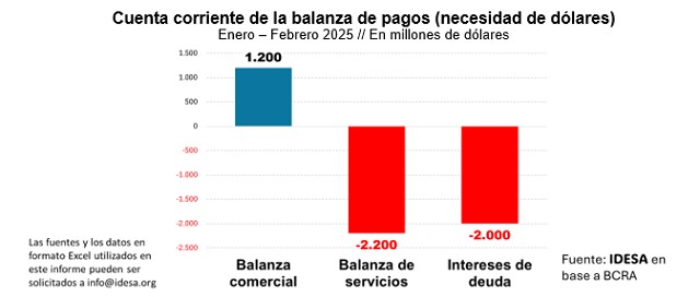 Estos datos muestran que la necesidad de divisas que tuvo el Banco Central en los dos primeros meses del año fue de 3.000 millones de dólares. Esto es la diferencia entre el superávit de balanza comercial menos el déficit de la balanza de servicios y el pago de intereses de deuda externa. La brecha se cubrió con entrada neta de capitales (préstamos externos menos salida de capitales) positiva en 1.000 millones de dólares y consumiendo alrededor de 2.000 millones de dólares de reservas. Este desempeño da sustento a las reticencias del FMI de que lo más probable que pase con el préstamo es que sea consumido por el turismo en el exterior o la fuga de capitales.