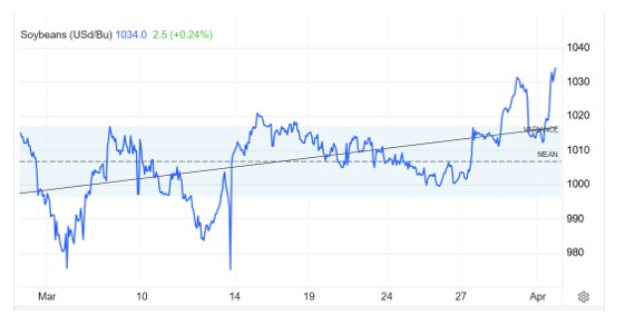 El cuadro que sigue nos muestra cómo desde el día 13 de marzo, el precio del aceite de soja ha emprendido un camino ascendente.