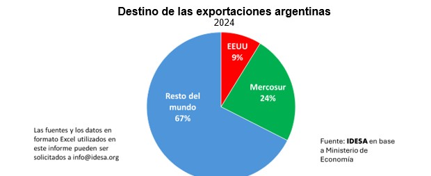 La pregunta que cabe hacerse es cómo impacta este nuevo escenario internacional a la Argentina y qué desafíos y oportunidades se presentan. Según datos del Ministerio de Economía sobre el destino de las exportaciones argentinas en el 2024 se observa que:
