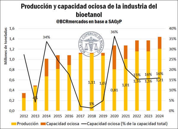 La pandemia tuvo enorme impacto sobre la industria de biocombustibles, reduciendo la demanda de naftas y llevando a la industria del bioetanol a operar con niveles de ociosidad superiores al 35%. No obstante, pasados los efectos de la pandemia, la eficiencia productiva, el cumplimiento de cupos y la recuperación de del consumo de combustibles redujeron la capacidad ociosa de la industria, localizándola actualmente en torno al 16%.