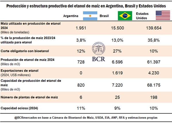Argentina convierte en etanol menos del 4% de su cosecha de maíz, frente a más del 13% de Brasil y el 35% de Estados Unidos