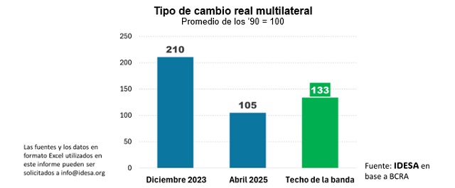 Estos datos muestran dos fenómenos muy importantes. En primer lugar, confirma que las mega devaluaciones tienen un impacto positivo efímero sobre el tipo de cambio real. El shock inflacionario que produce hace que el efecto real de la devaluación rápidamente se disipe. Esto es lo que ocurrió con la devaluación de diciembre de 2023. En segundo lugar, los cambios anunciados por el gobierno, aun en la hipótesis que el dólar se ubique en el techo de la banda, es una corrección del tipo de cambio real modesta dado los severos problemas de competitividad que adolece gran parte de la producción nacional.