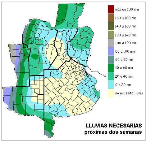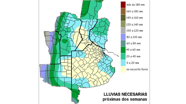 Partiendo de las condiciones actuales y proyectando las necesidades pluviales para las próximas dos semanas, podemos concluir que la demanda de los perfiles se ajusta a valores modestos o incluso nulos. La zona núcleo central está bien posicionada, al igual que la mayor parte de BA y LP.