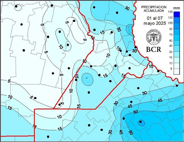 En Santa Fe, también se destaca la cantidad de agua que recibió Súnchales: fueron 107 milímetros, cantidad que duplica el promedio de todo mayo. El tercer registro destacado fue el de Chacabuco, en Buenos Aires, donde los 76 milímetros acumulados cubrieron el valor medio estadístico del mes.