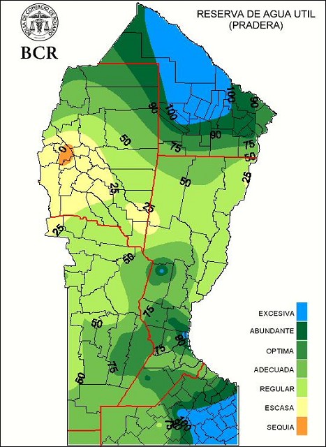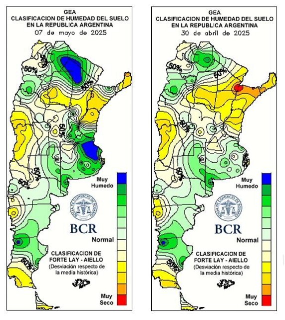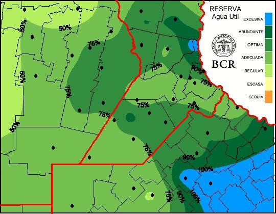 El consultor Elorriaga explica que la cobertura pluvial de la primera semana del mes tuvo un efecto de recarga en la franja este de la región pampeana, con sobreoferta de agua en el noreste bonaerense. “Pero también se nota con una disminución de los niveles sobre territorio Cordobés, donde las lluvias fueron exiguas. Sin embargo las intensas precipitaciones cambiaron totalmente la disponibilidad hídrica en el NEA, donde las reservas regulares de la semana anterior dieron paso a exceso de agua en los perfiles”.