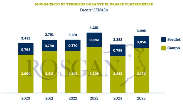 Un indicador bastante consistente para analizar esta tendencia, se puede observar en los destinos a los cuales se trasladan los terneros y terneras que salen año tras año de los campos de cría.