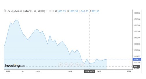 Para levantar el ánimo argentino, bien vale observar cómo desde el 1 de octubre de 2024 se nota una suave recuperación del precio internacional en Chicago.