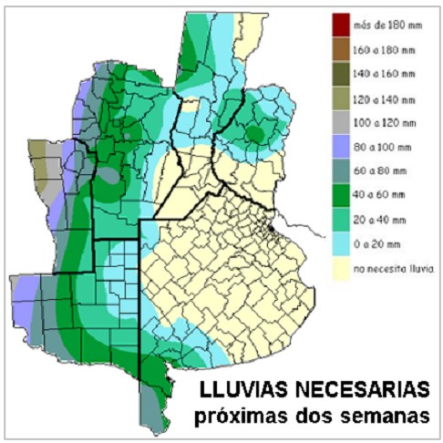 Como resultado de la sobreabundancia pluvial, prevalece una vasta zona donde las lluvias son innecesarias en las próximas dos semanas. La complejidad extra es la baja capacidad de escurrimiento que presenta la cuenca baja del Salado bonaerense, hacia donde convergen gran parte de los excesos hídricos que ha generado este evento extraordinario.