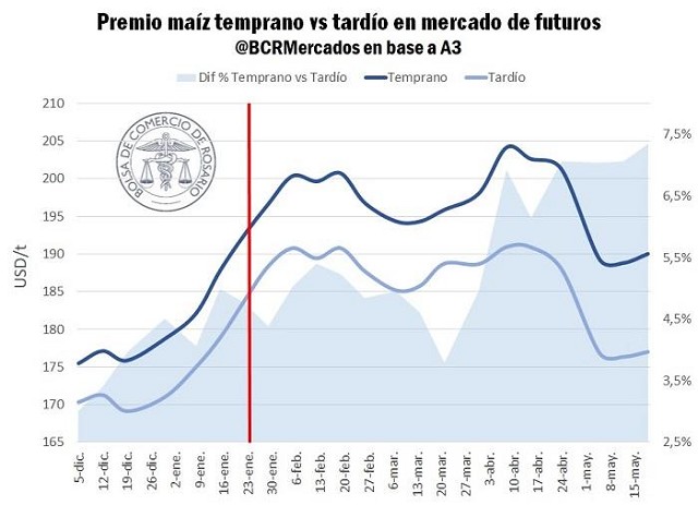 Los negocios por maíz tardío a cosecha alcanzaron el 42% del total de los negocios por el cereal en las últimas dos semanas, mientras que en esta semana, el volumen diario promedio que casi se duplicó respecto de las mencionadas cuatro, llegando a cerca de 70.000 toneladas.